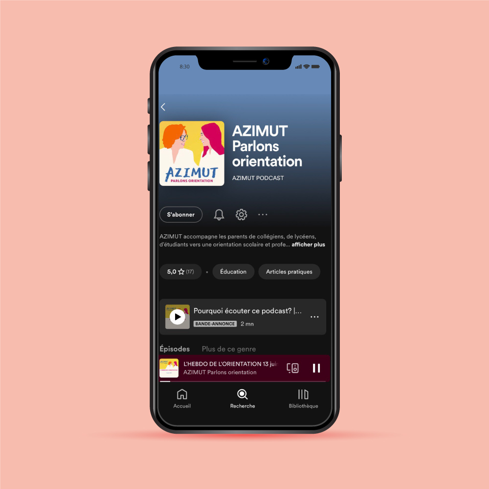Le client : Azimut est un podcast à destination des parents, dédié au questionnement de ces derniers concernant les projets d’orientation de leurs enfants.