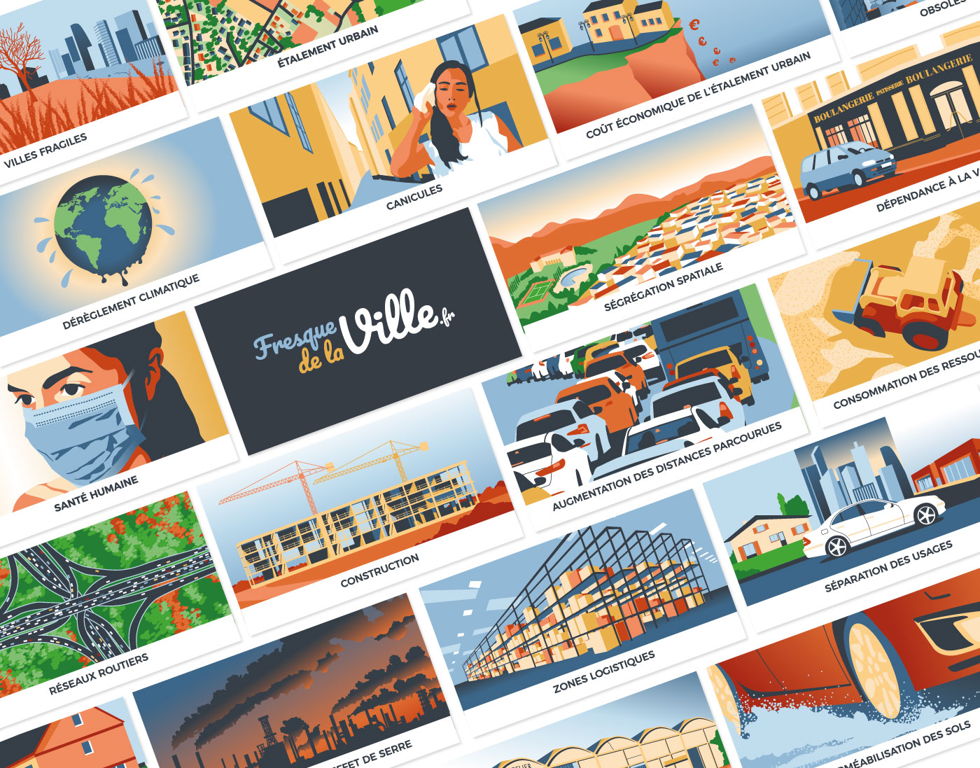 Demande : Création d’un jeu de cartes professionnel et de son univers graphique, sur le sujet de l’environnement et l’urbanisme.